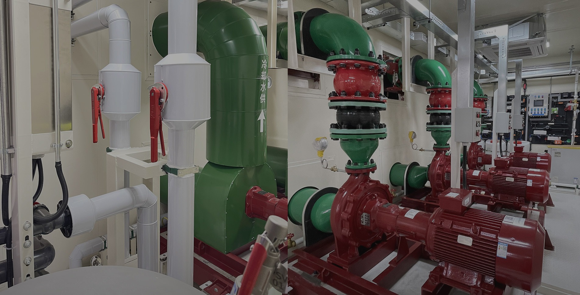 系统介绍:集成冷站采用4+1拼舱组成,,,,整套系统配置变频磁悬冷水机组4台,,,,4台冷冻水泵,,,4台冷却水泵,,,,4台板换及旁滤、、、、自动加药、、自动定压、、、、高效扫频装置、、相关管路与阀门等组成。。。